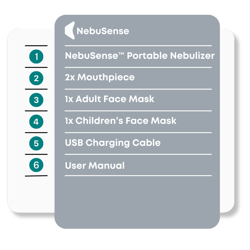 This list is not comprehensive, nor does it assure that using your saline or medication in the NebuSense™ nebulizers will treat these conditions. Always consult your healthcare provider before nebulizing any substance.