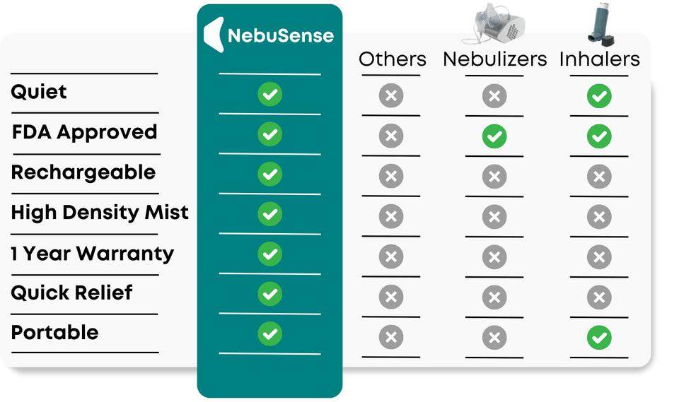 The NebuSense™ portable nebulizer is made for anyone that needs to open up their airways, and it provides relief for everything from a common cold to COPD. We are proud to provide the best solution possible for everyone.